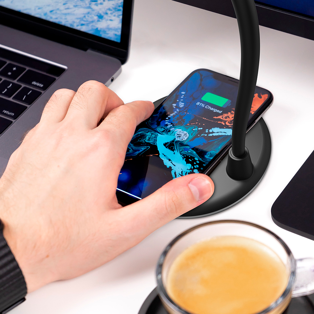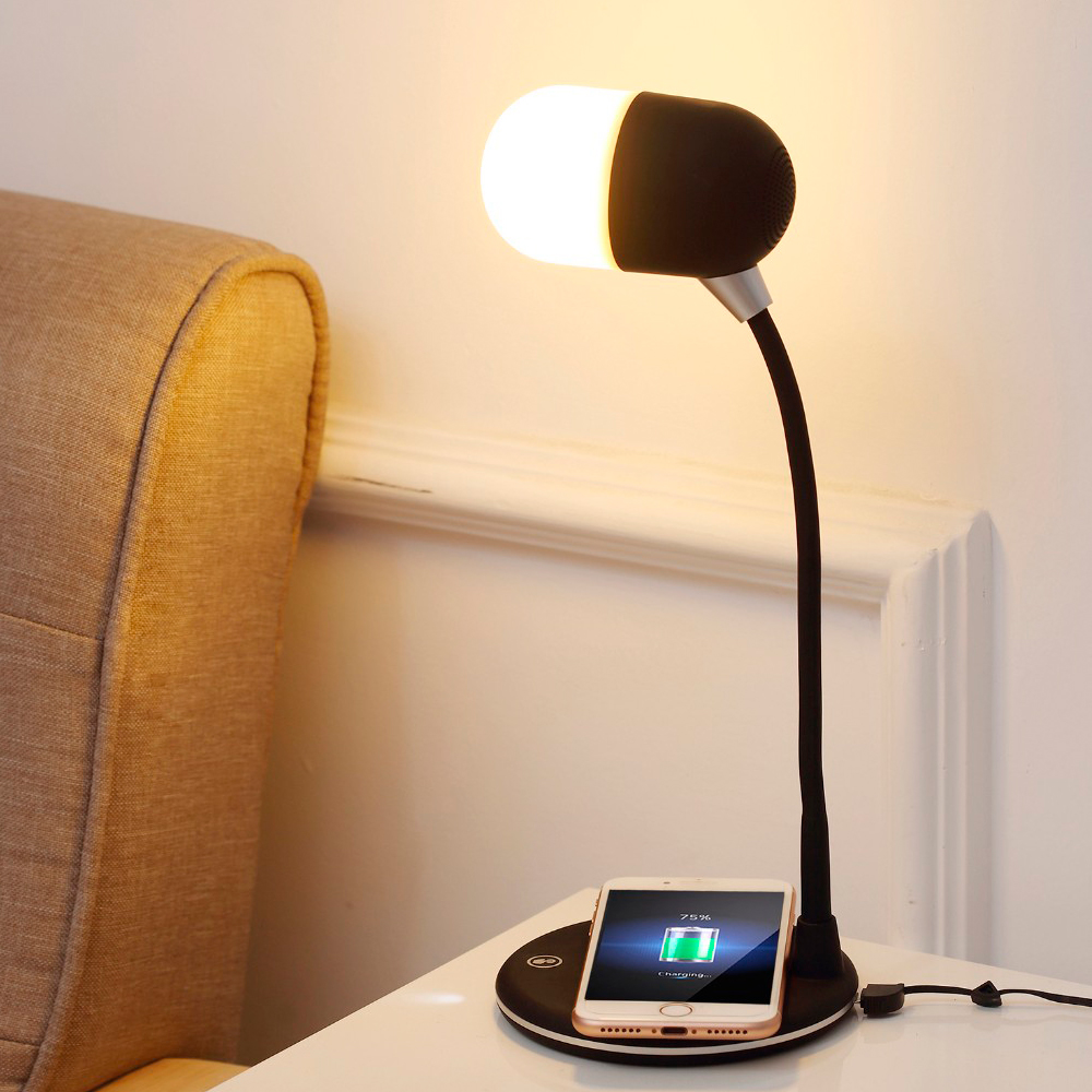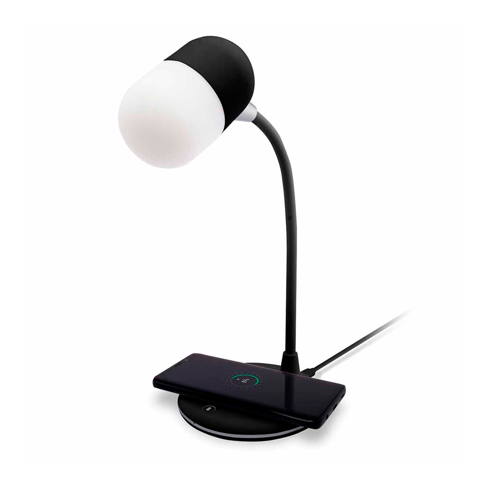 Лампа с колонкой и беспроводной зарядкой Alladin, черная