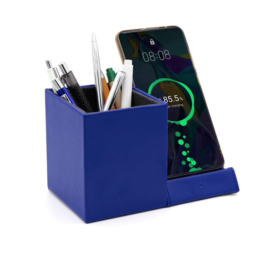 Настольный органайзер Elegans c беспроводной зарядкой, синий